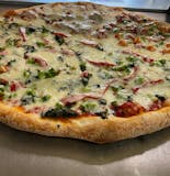 Thin Sicilian crust brushed with olive oil & garlic, fresh mozzarella, and spotted with chunky San Marzano tomato sauce.